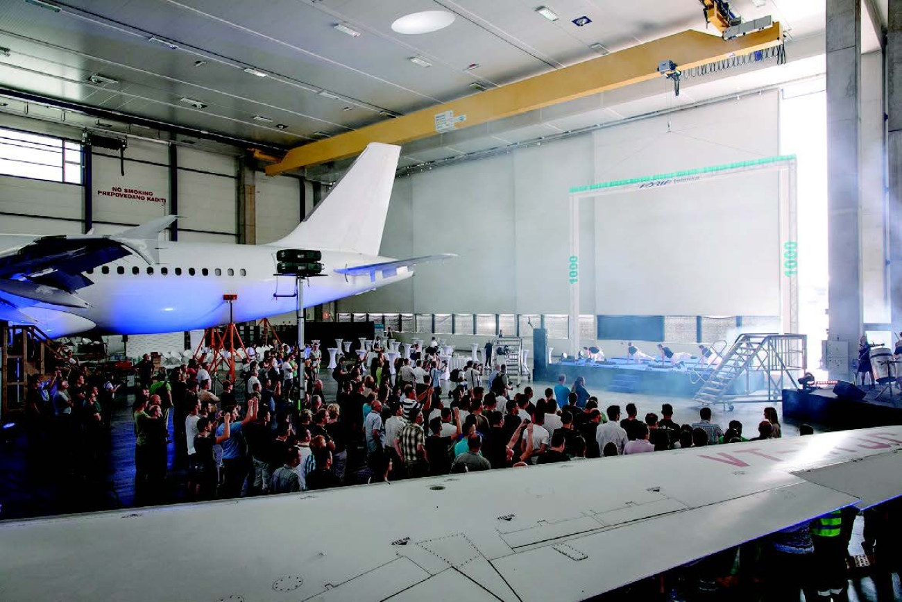 Ob peti obletnici delovanja podjetja je naročnik želel proslaviti še en mejnik – prenovo 1000. letala. Dogodek smo postavili v hangar naročnika, kjer se je med letali odvil atraktiven plesno-glasbeni in akrobatski program s pogostivijo. Za tuje goste smo pripravili dodaten program na Brdu pri Kranju in organizirali prevoze in namestitev.